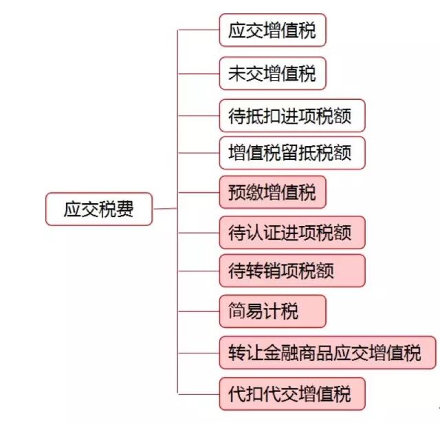 一般纳税人应在「应交税费」科目下增设六个二级科目:“预缴增值税”、“待认证进项税额”、“待转销项税额”、“简易计税”、“转让金融商品应交增值税”、“代扣代交增值税”,取消一个二级科目“增值税检查调整”。至此,“应交税费”下属与增值税有关的二级明细科目由原来的五个增加到十个,涂红为新增。